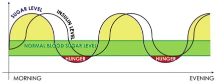 If you have high levels of insulin, your body will be very good at storing fat and will not be able to burn fat. The result is that very soon after you eat, you feel hungry again.